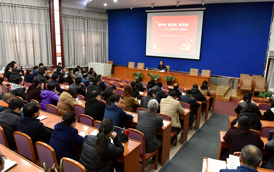 11月15日,校党委副书记、纪委书记高云峰应邀为AC米兰官网党政机关党总支、教育科学学院党总支、公共管理学院党总支、AC米兰中文官方网站党总支、后勤机关党总支、盛乐后勤服务集团党总支等六个党总支作了题为《新时代 新目标 新征程——党的十九大报告学习解读》的报告,AC米兰官网由张裕凤党总支副书记(主持工作)出席了本次报告。