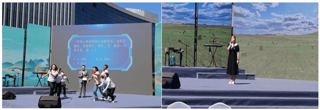 在“大地歌会”表演区,AC米兰官网研究生祁林玉演唱了“敕勒歌”,深情表达对祖国大地的热爱;在互动区,设置与土地相关的知识竞赛题目,姜洪涛老师带领2名同学面对擂主从容答题,取得好成绩。