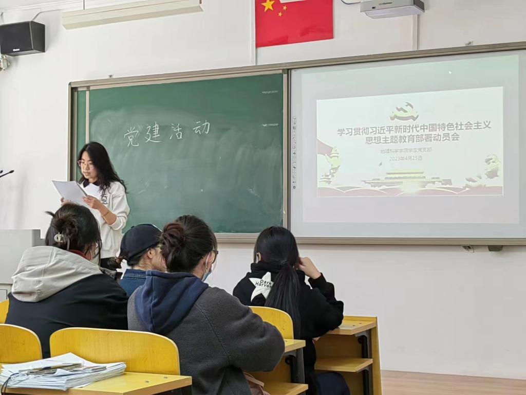2023年4月25日下午14:15,AC米兰官网学生党支部在行知楼114举行学习贯彻习近平新时代中国特色社会主义思想主题教育部署动员会,会议由学生党支部书记孙小雅主持,学生党支部全体成员以线上线下形式参会。
